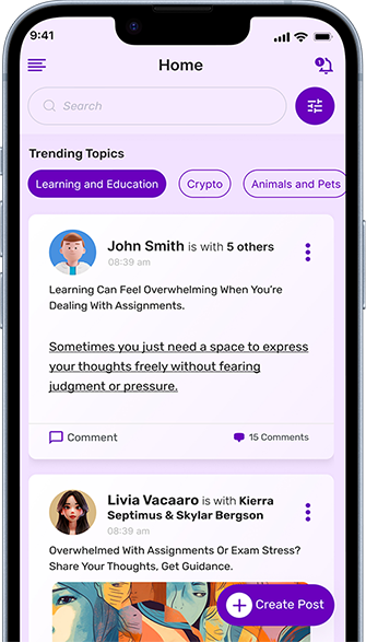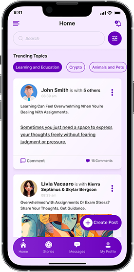 Share, listen, and heal—safely and judgment-free, right from your phone.